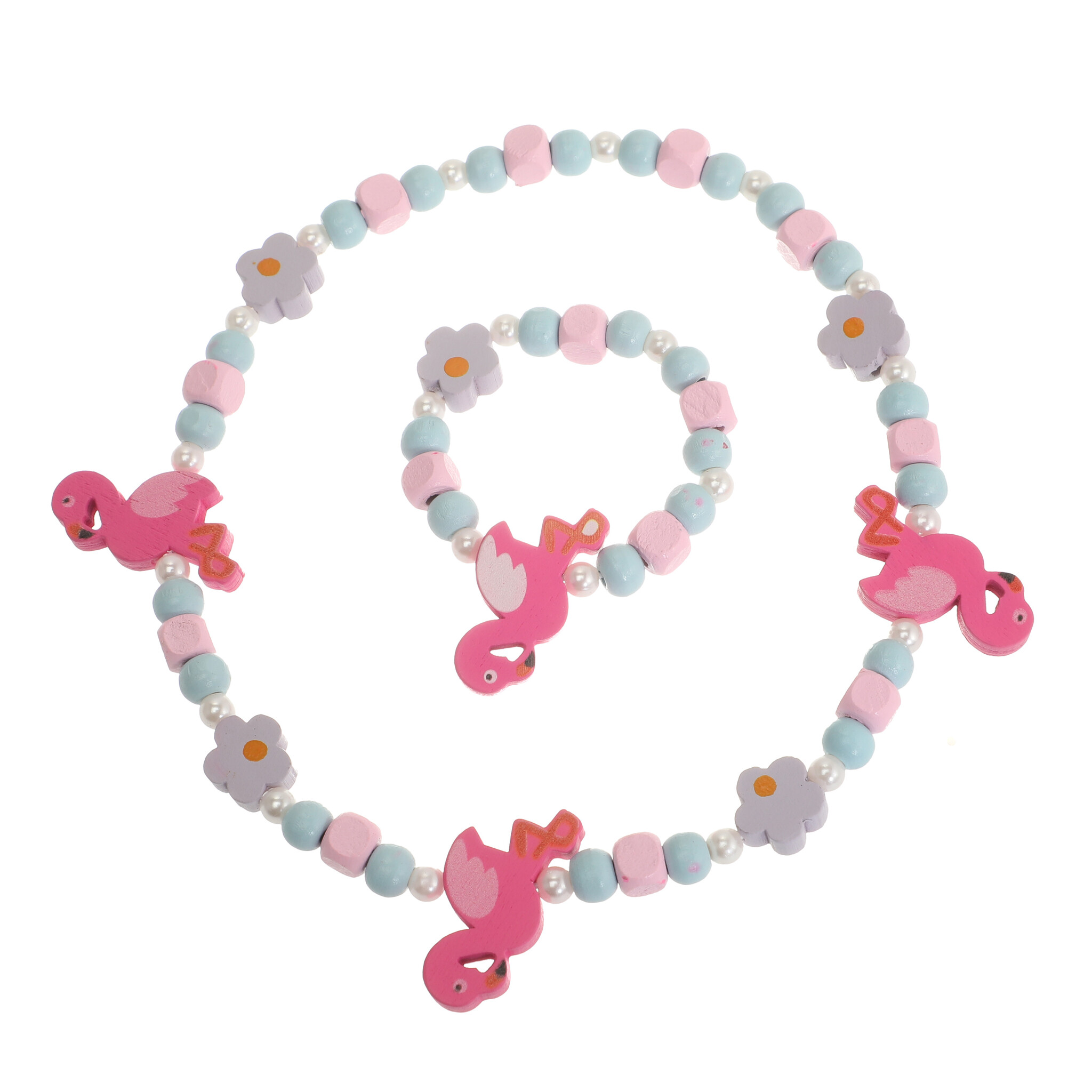Elastische houten Flamingo set Armband en halsketting