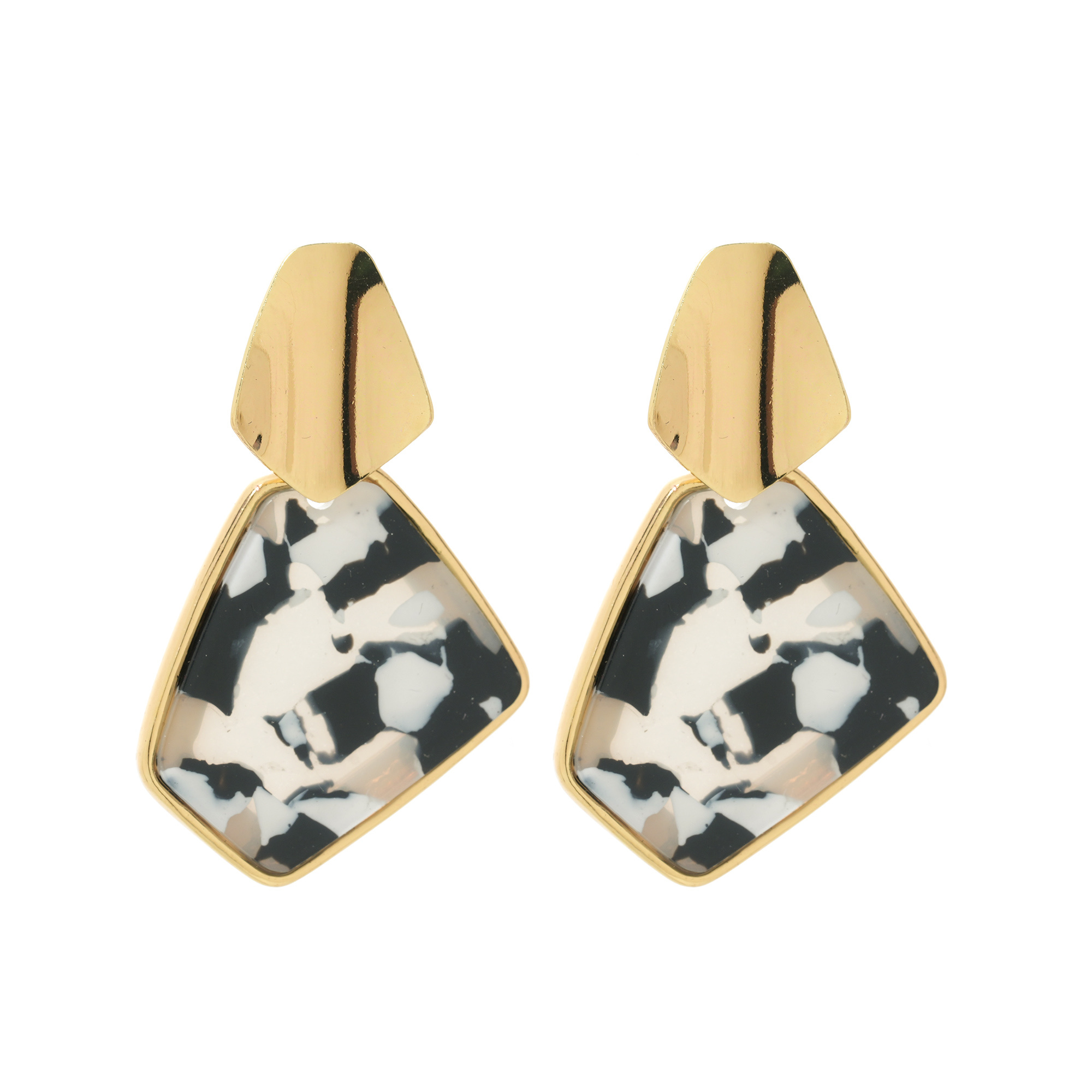 Goudkleurige doorsteekoorbellen met plexi marmer look stone De totale lengte is 5 cm