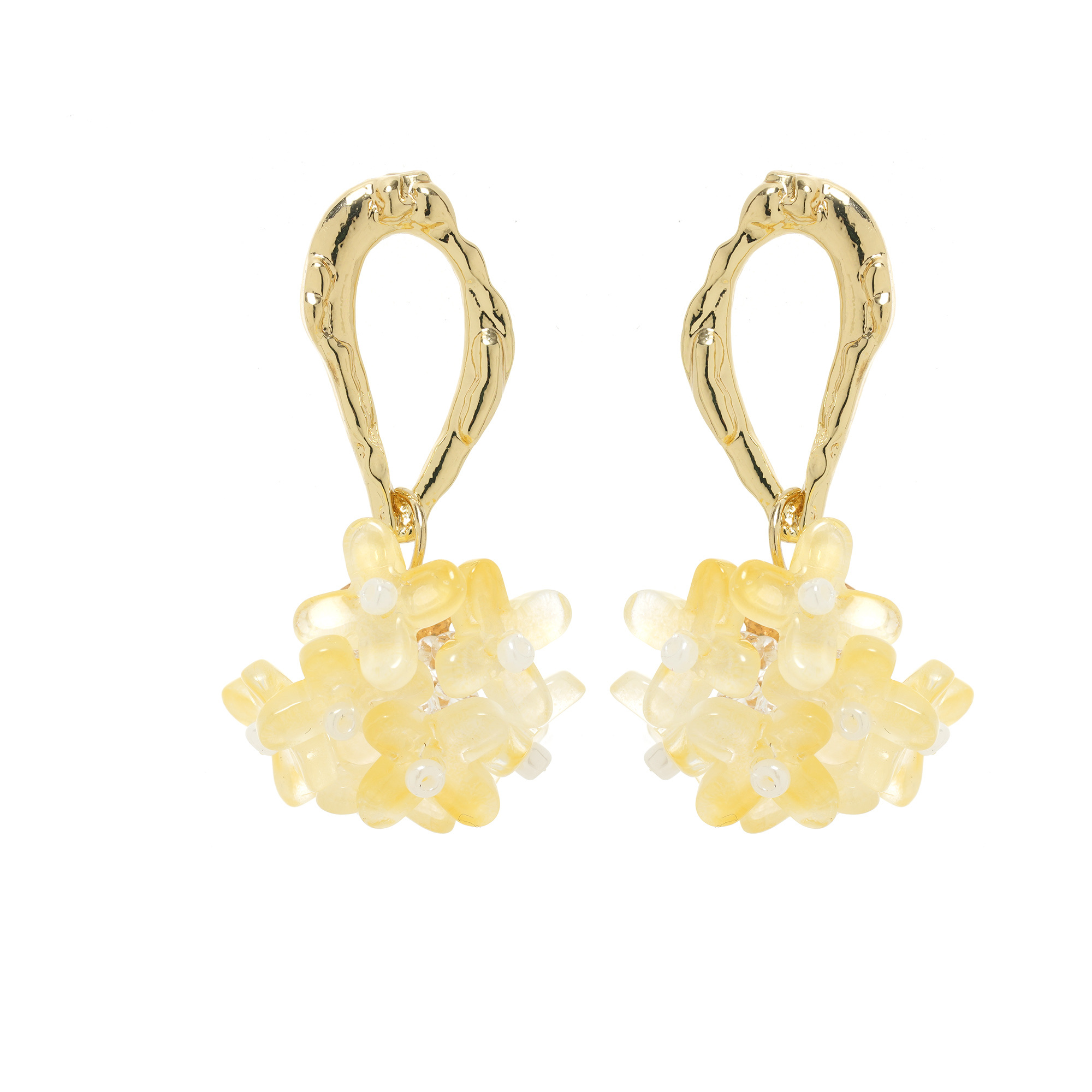 Flower oorbellenset met kleine gele bloemetjes en goudkleurige finish De totale lengte van de oorbellen is 4 cm