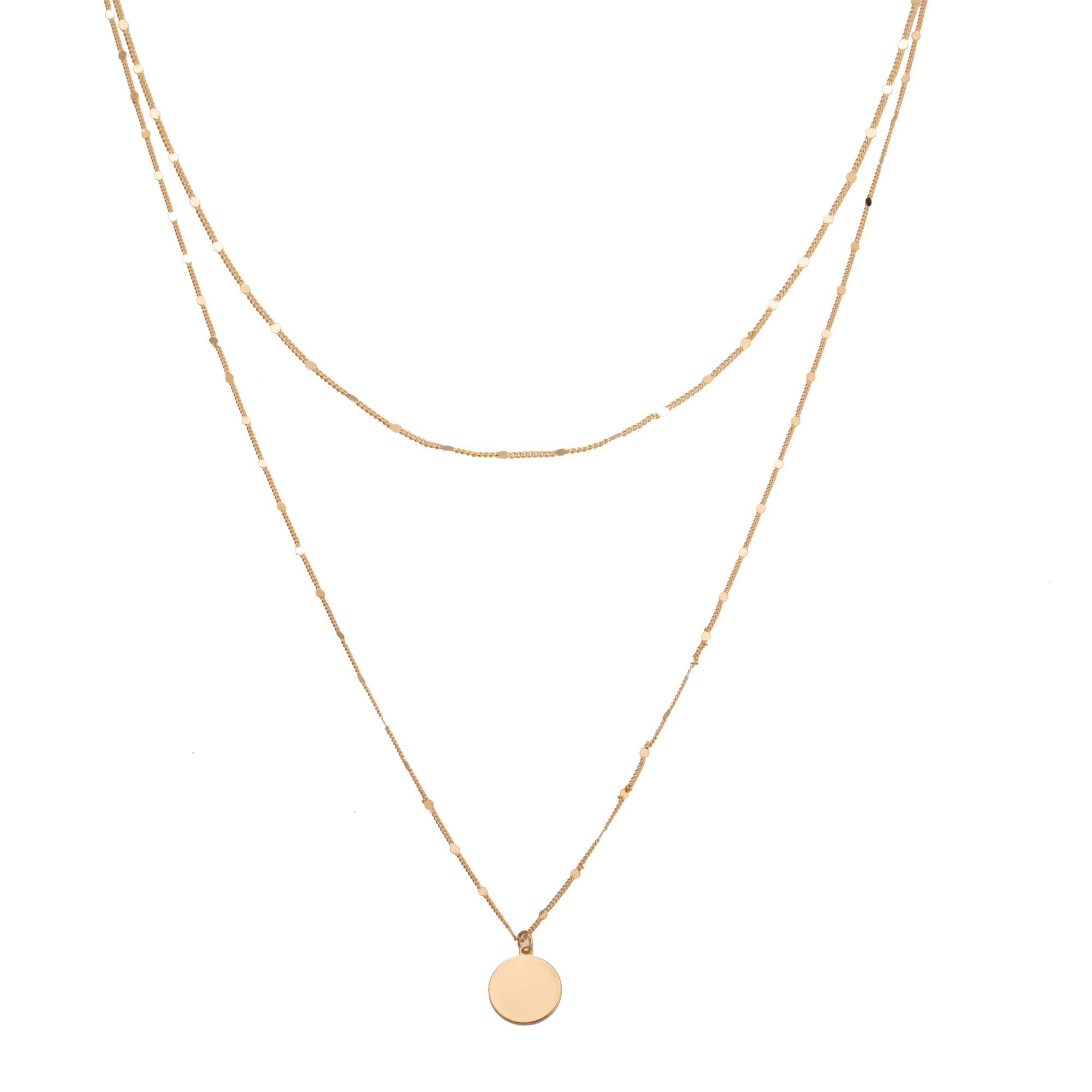 Middellange en kortere goudkleurige duo halsketting met verlengketting aan sluiting