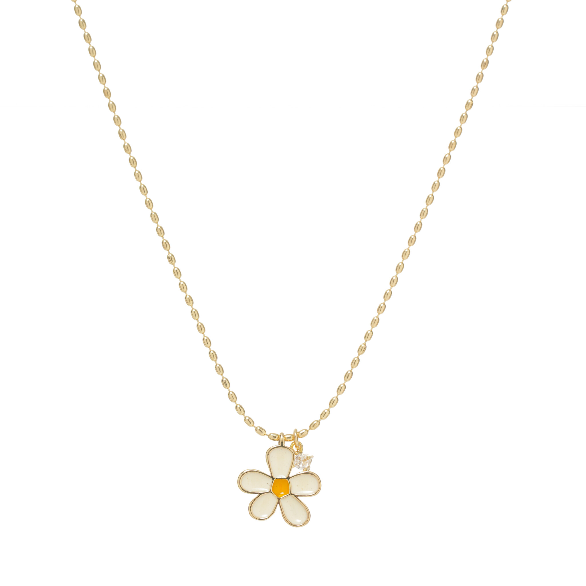 Goudkleurige Daisy kinderhalsketting met bloemetje De Bloem heeft grootte van 1.2 cm en halsketting heeft een verlengketting en lobster closing zodat de ketting korter of langer gedragen kan worden