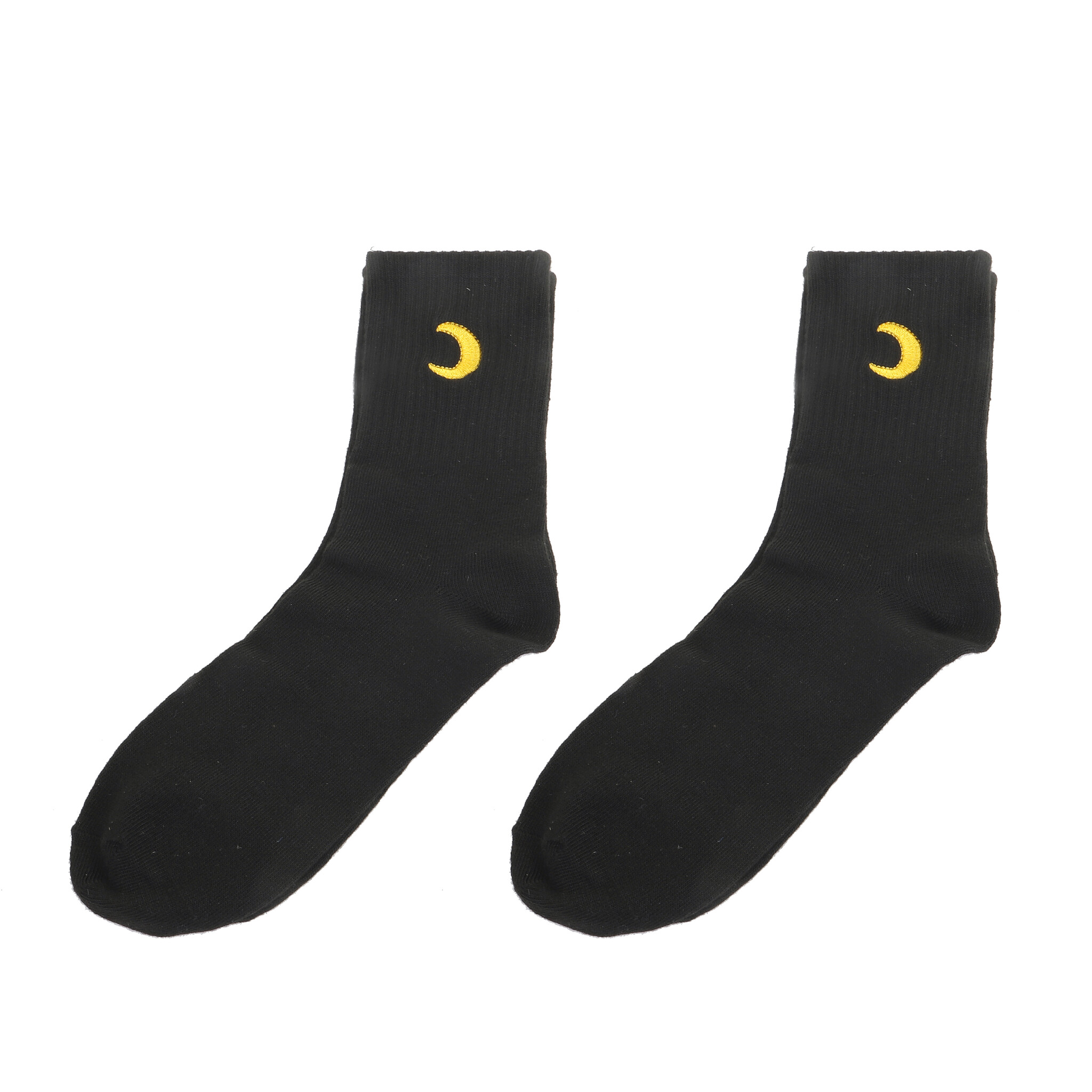 2 paar zwarte sokken met gele maan design - 80% viscose 15% polyester 5% spandex. Maat 36-41
