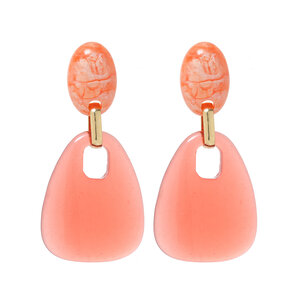 Plexi soft orange-koraal doorsteekoorbellen Totale lengte 7.5 cm