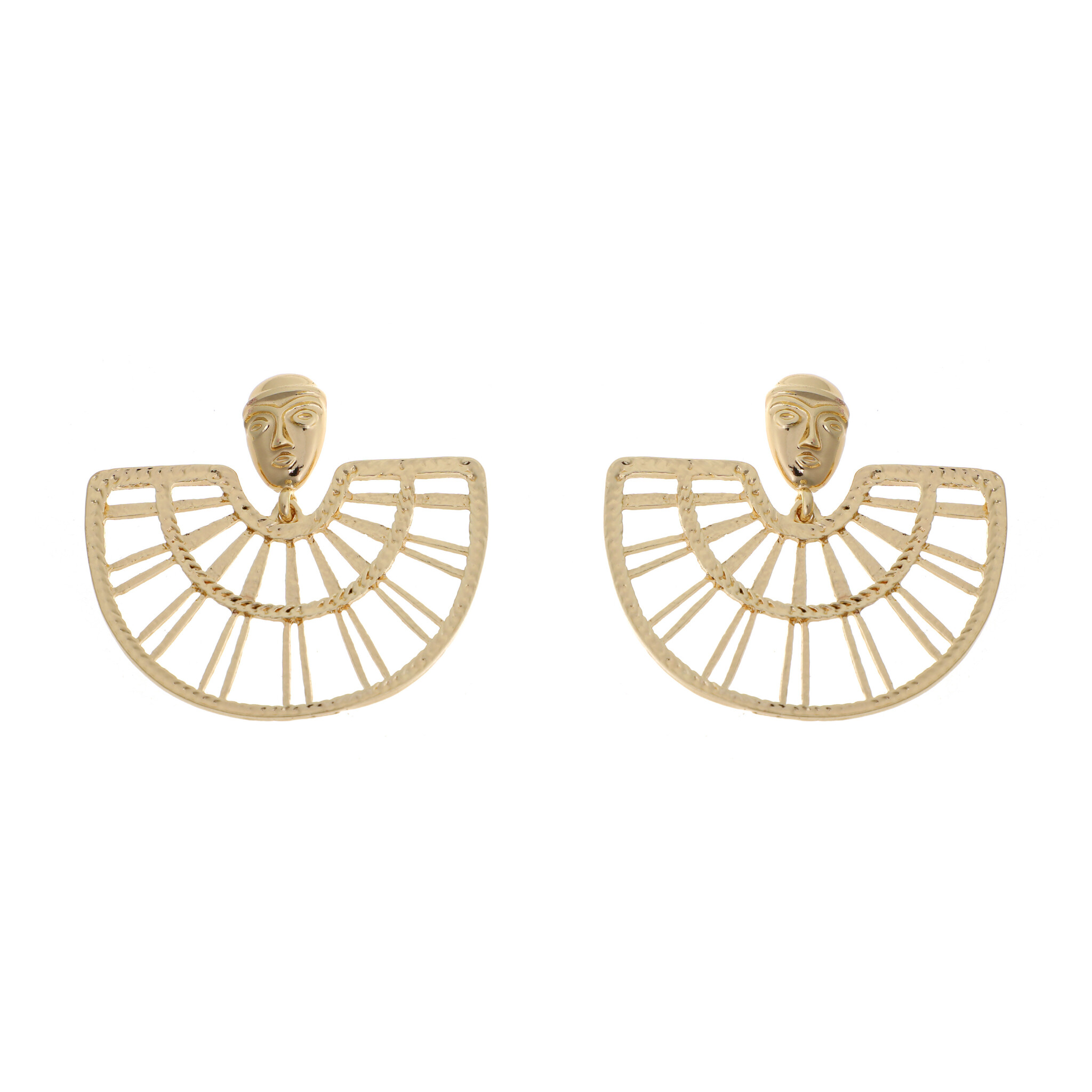 Goudkleurige statement oorbellen L' Afrique Breedte oorbellen is 5 cm en totale lengte incl. charms is 4,7 cm