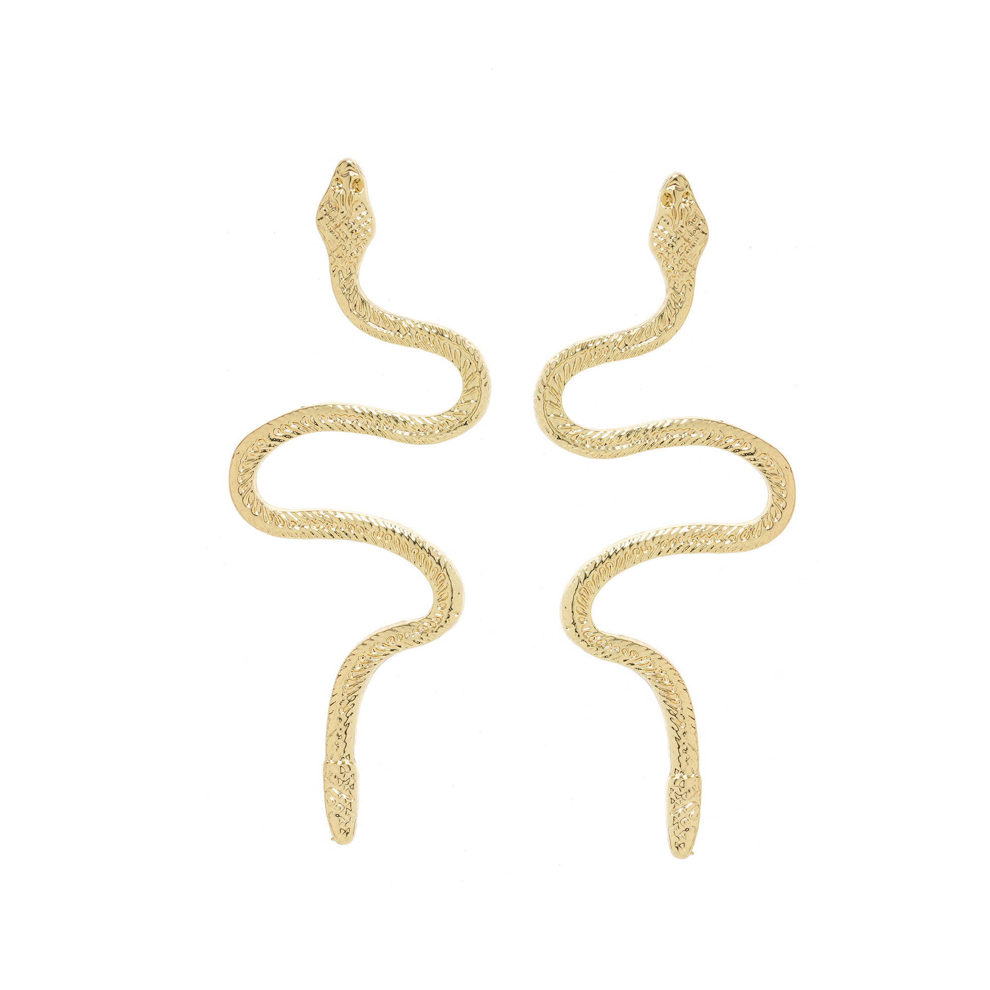 Goudkleurige Snake oorbellen Breedte oorbellen is 2,5 cm en totale lengte incl. charms is 7 cm