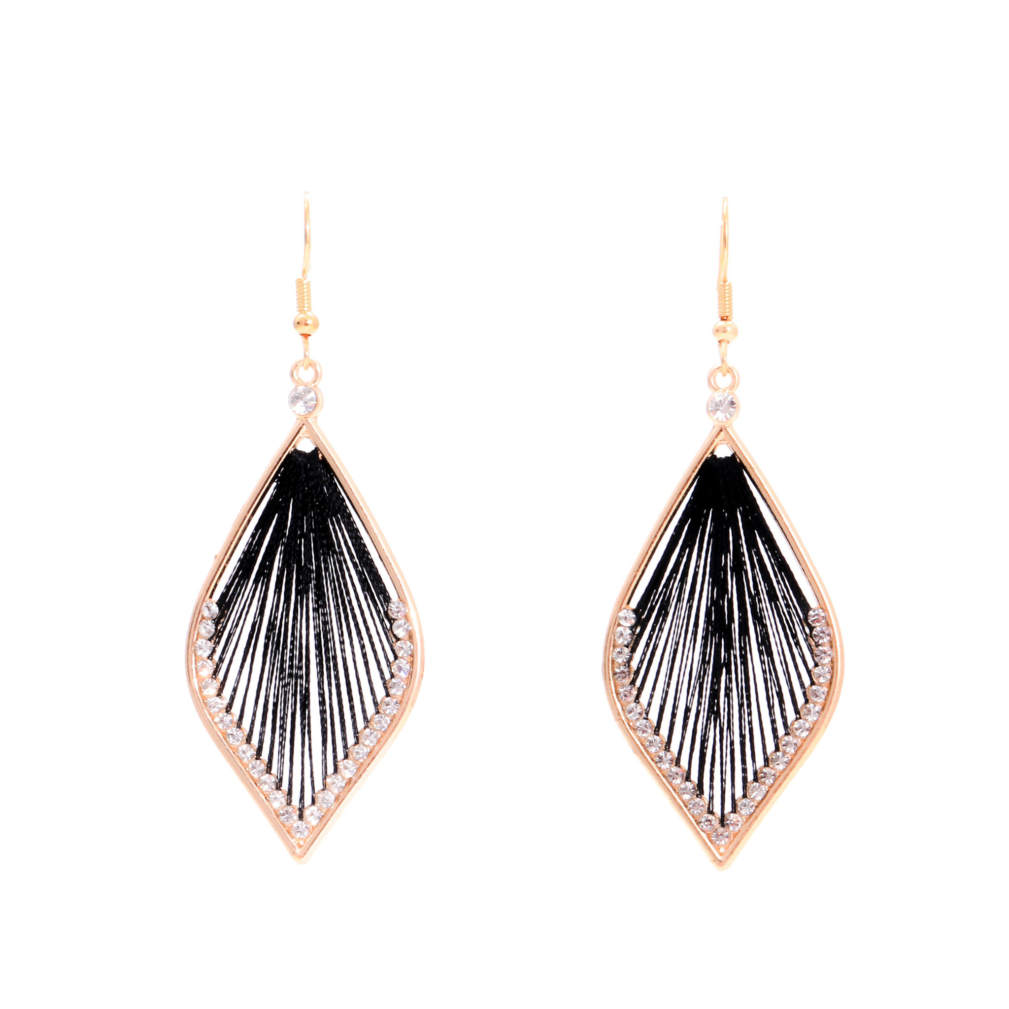 Goudkleurige oorbellen met zwarte weave en steentjes Totale lengte oorbel is 7cm