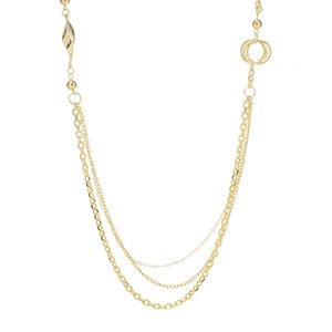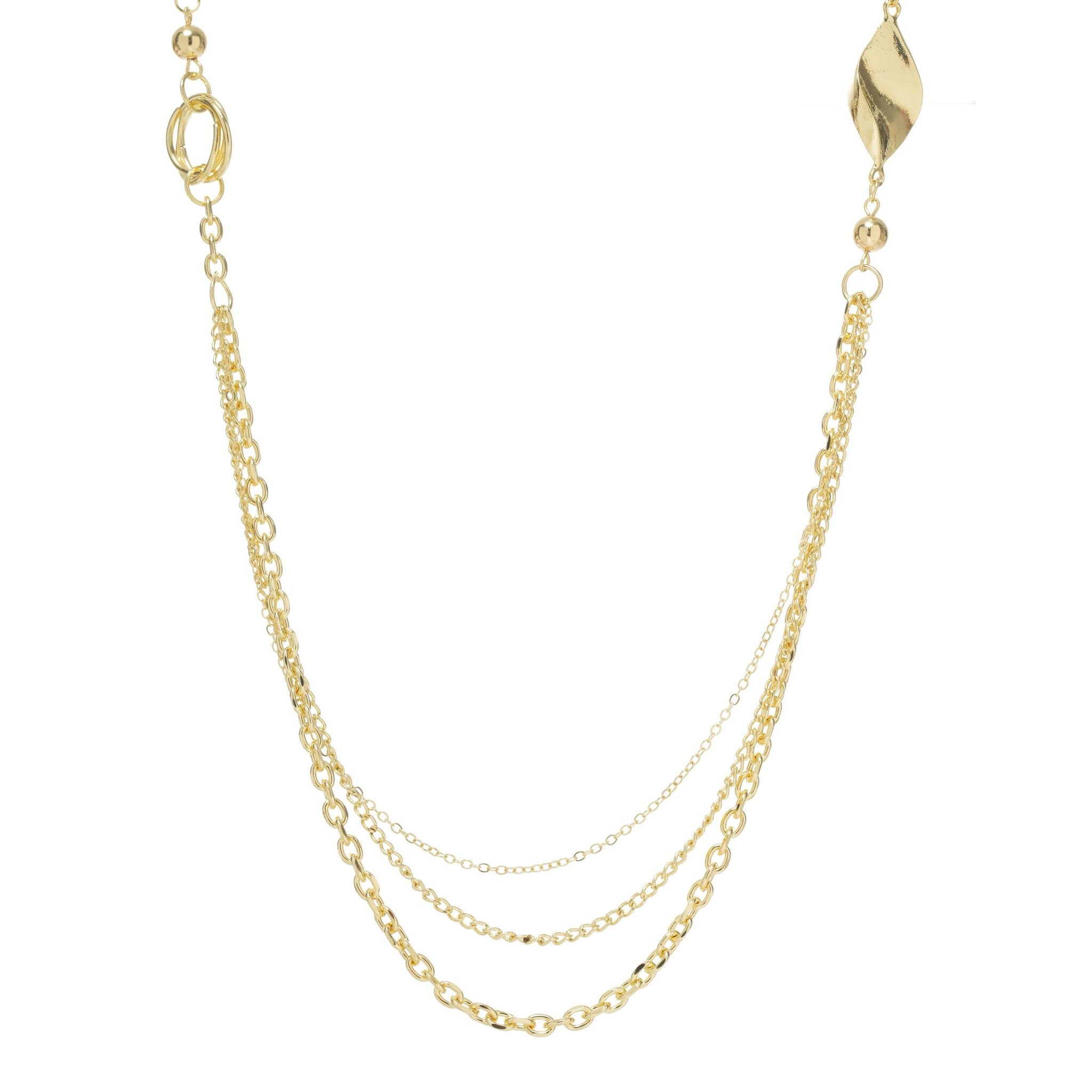 Halflange 3 lagige halsketting die op de borst valt in goudkleurige finish