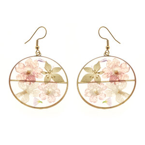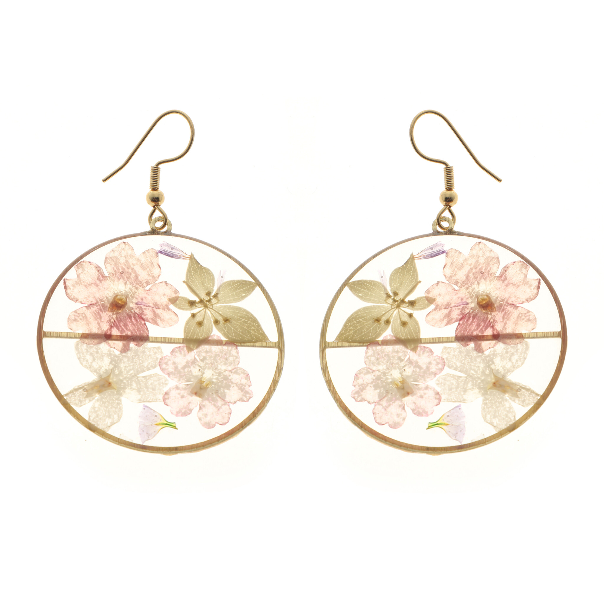 Echte gedroogde bloemen collage oorbellen in roze tinten met goudkleurige afwerking Diameter 3.7 cm Opgelet, de oorbellen kunnen qua kleur en bloemen afwijken aangezien dit om natuurlijke producten gaat kunnen ze niet identiek aan mekaar zijn