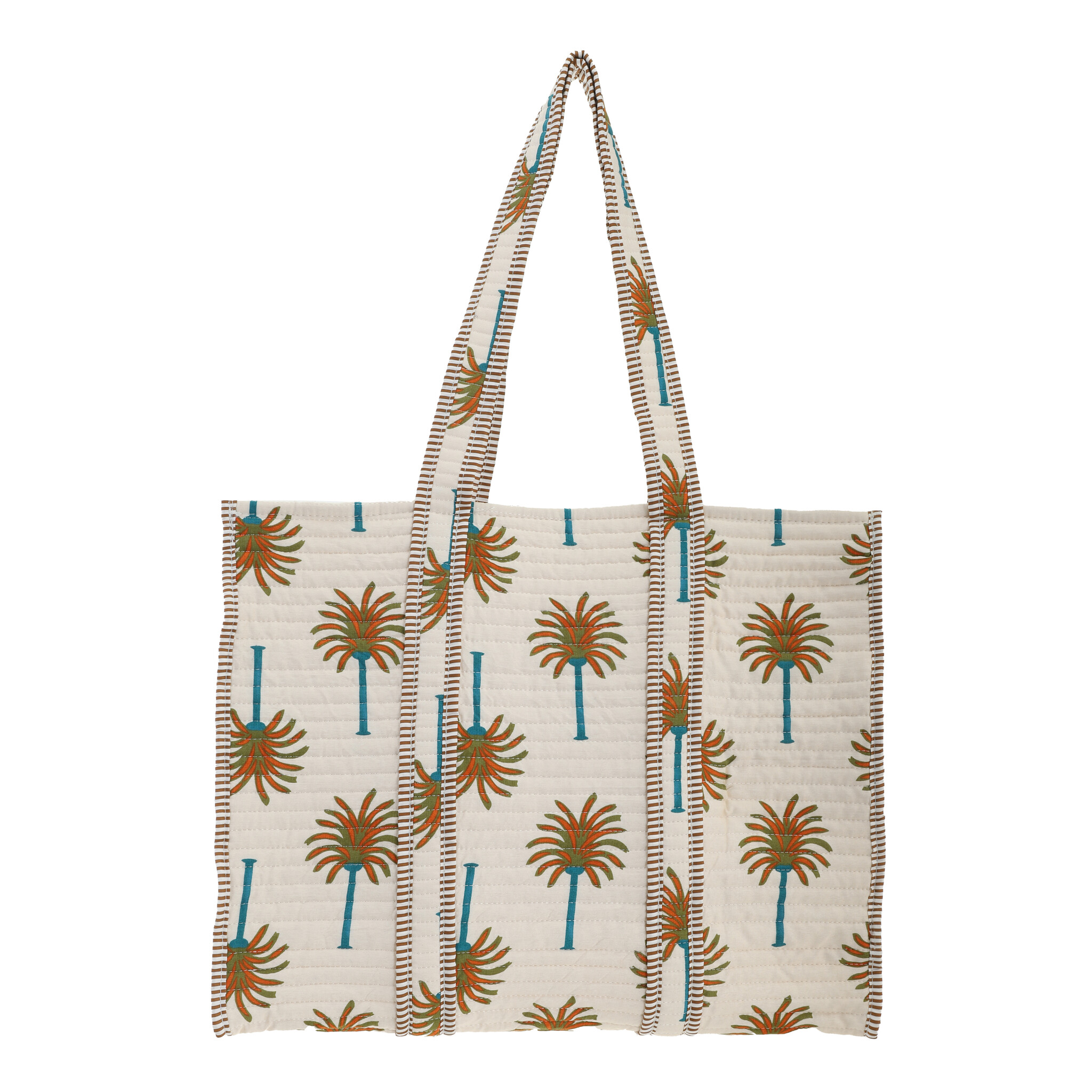Deze Palm shopper tas is gemaakt van katoen met softe feel met veel ruimte voor badjas, slippers en meer wat maakt dat deze shopper ideaal is voor een dagje strand, sauna of als shopper handtas! De binnenkant heeft een opbergzakje ! 47cm*38cm + hendels