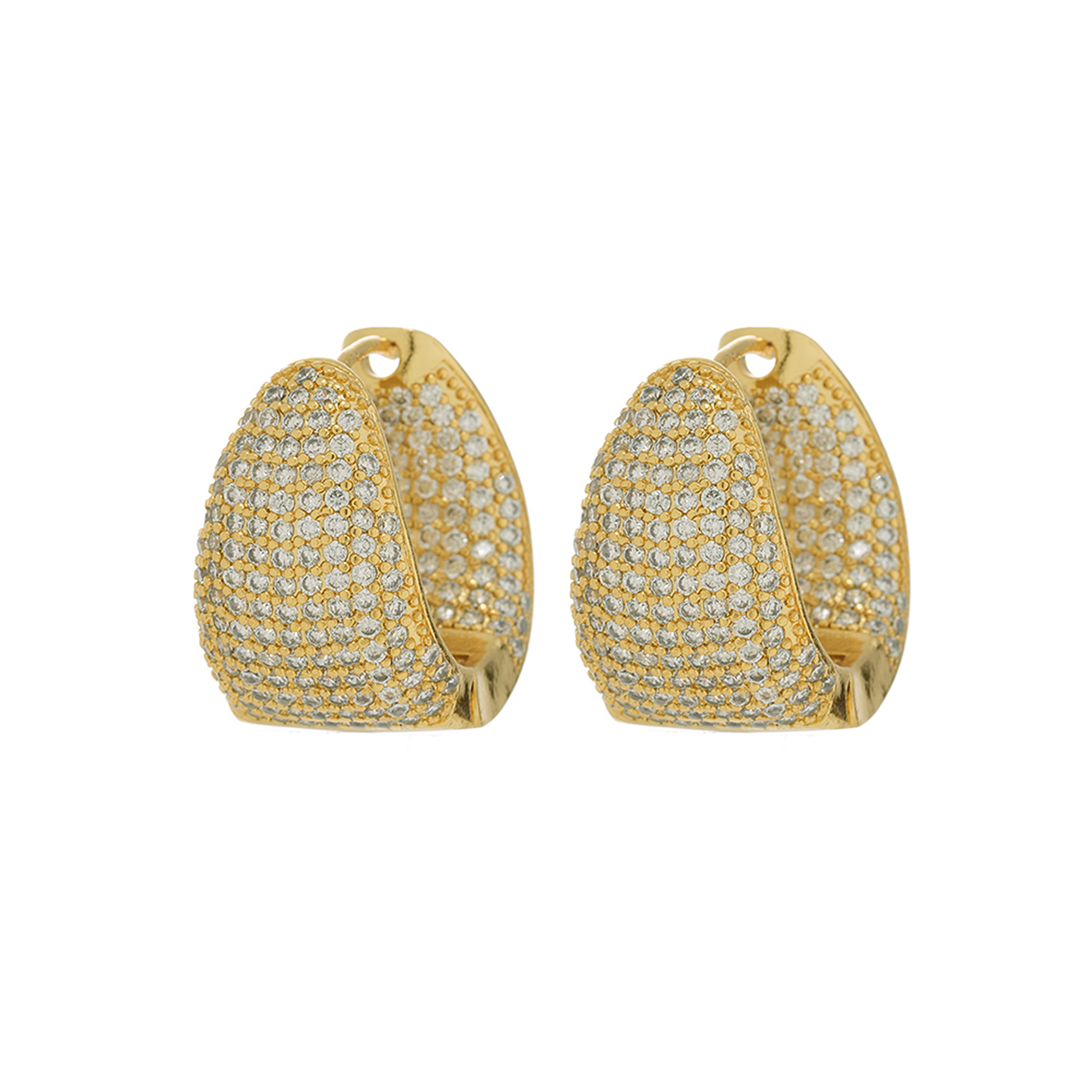 Deze oorbellen hebben zircone steentjes Materiaal: koper en 16K real gold plating.