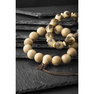 NANMU elastische mannen armband met houten nanmu parels gemaakt van de nanmu boom die in Zuid Azië groeit, de parels hebben een lichte speciale houtgeur en zijn 15 mm dik Volgens de Ming-dynastie blijkt dit hout als superieur duurzaam zachthout