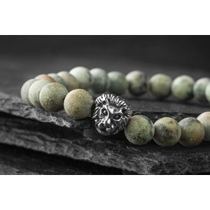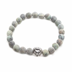 LION TURQUOISE ASH elastische mannenarmband met Afrikaanse turquoise parels die van kleur kunnen veranderen wanneer ontrouwe energie dreigt. Turquoise geeft balans aan het leven en geeft kracht. Standaard verpakt in Oosters stoffen zakje