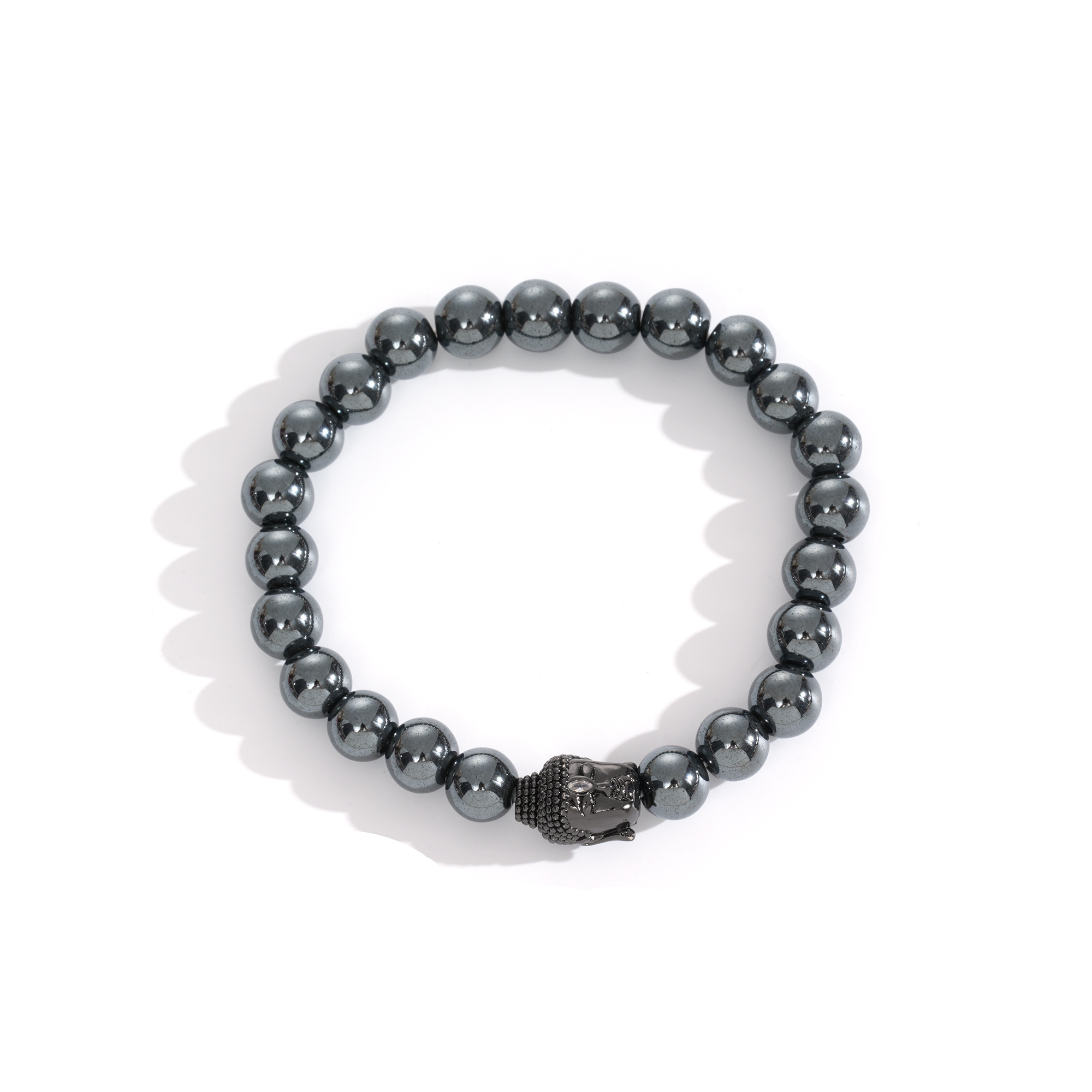 Bullit Buddah elastische mannenarmband met Hematite stones. Hematite werkt aardend en activeert innerlijke harmonie , wilskracht en zelfvertrouwen, het verbetert ook het geheugen & concentratie. Standaard verpakt in Oosters stoffen zakje