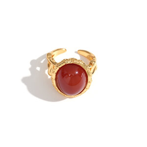 Open goudkleurige ring 'bordeaux stone' Copper base & real gold plating