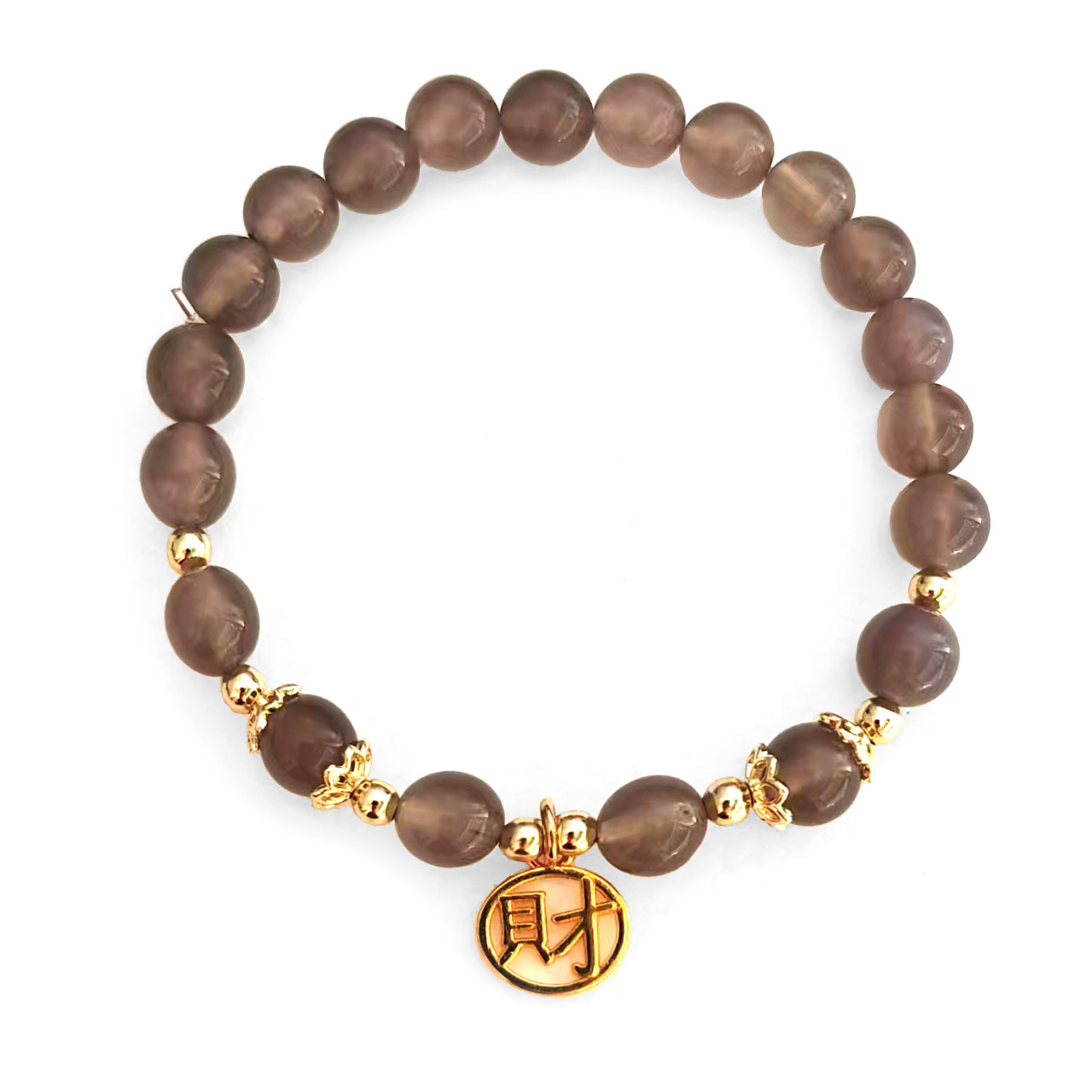 Armband met 'Agaat' parels & Good Fortune pendant in Real gold plating