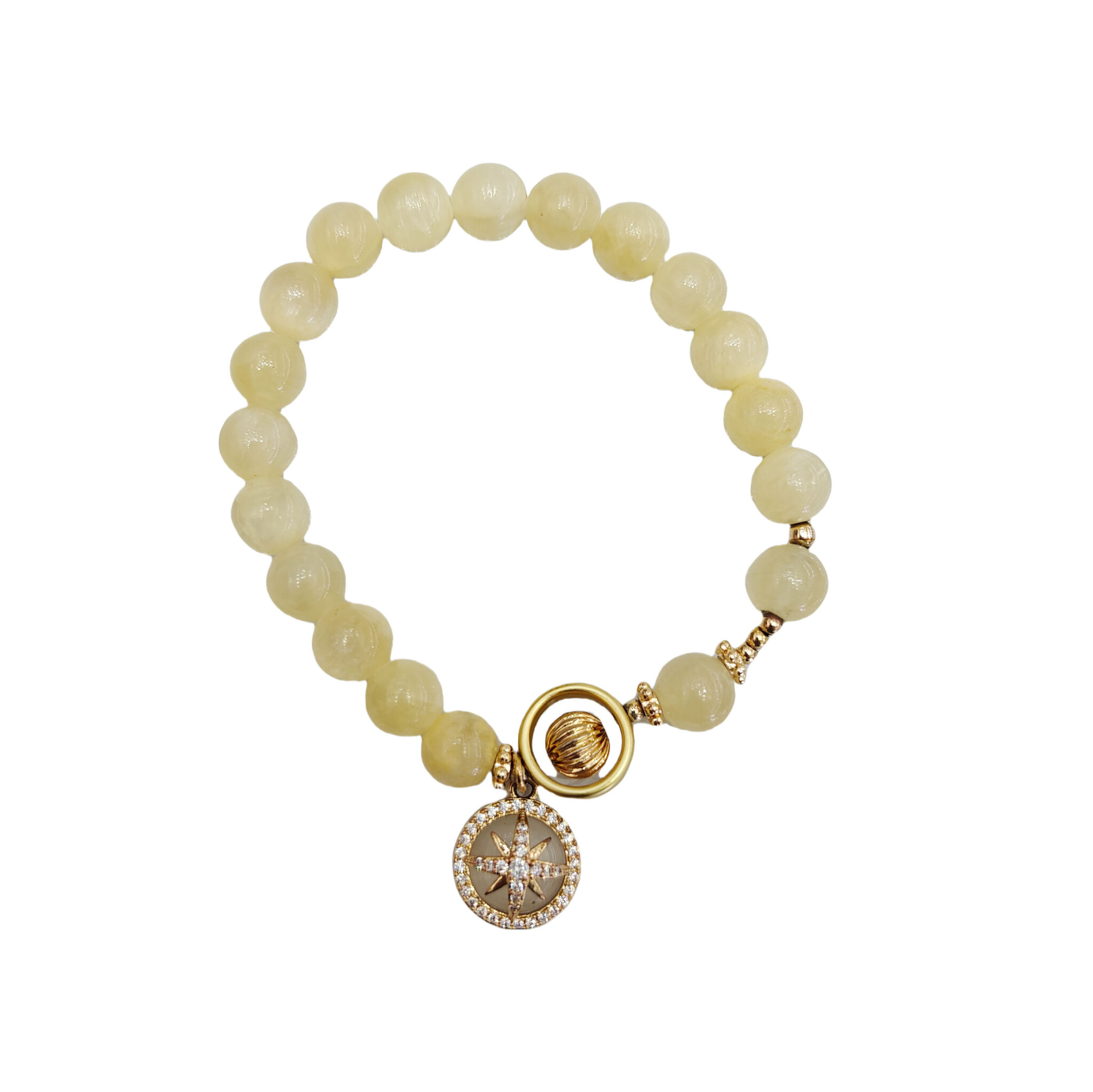 'Crystal compass' armband met Golden silk Jade stone parels & Real gold plating finish Golden silk Jade is een krachtige edelsteen die is afgestemd op de zonnevlecht en waarvan wordt aangenomen dat hij vreugde brengt, angst vermindert, het zelfvertrou