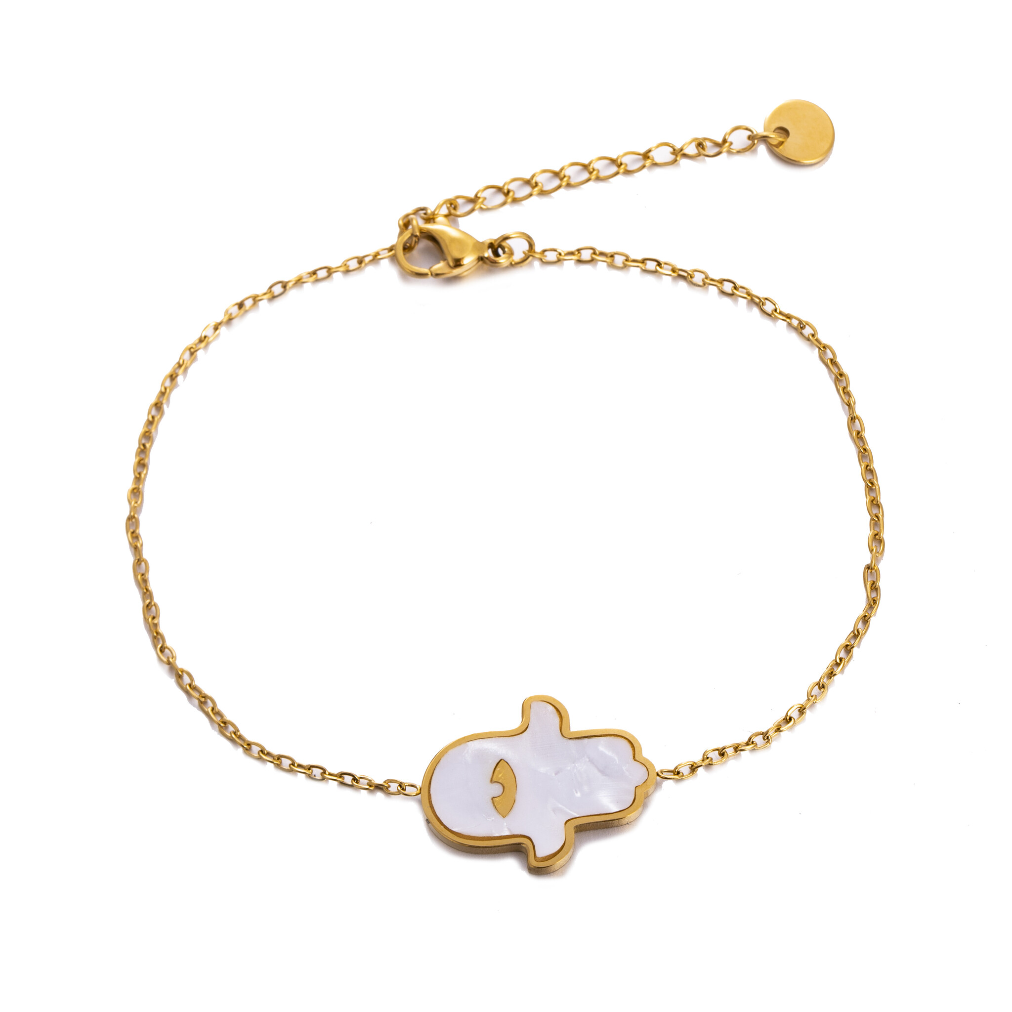 'Protective Hand' armband met verlengstukje vervaardigd uit Stainless Steel & Real Golden plating