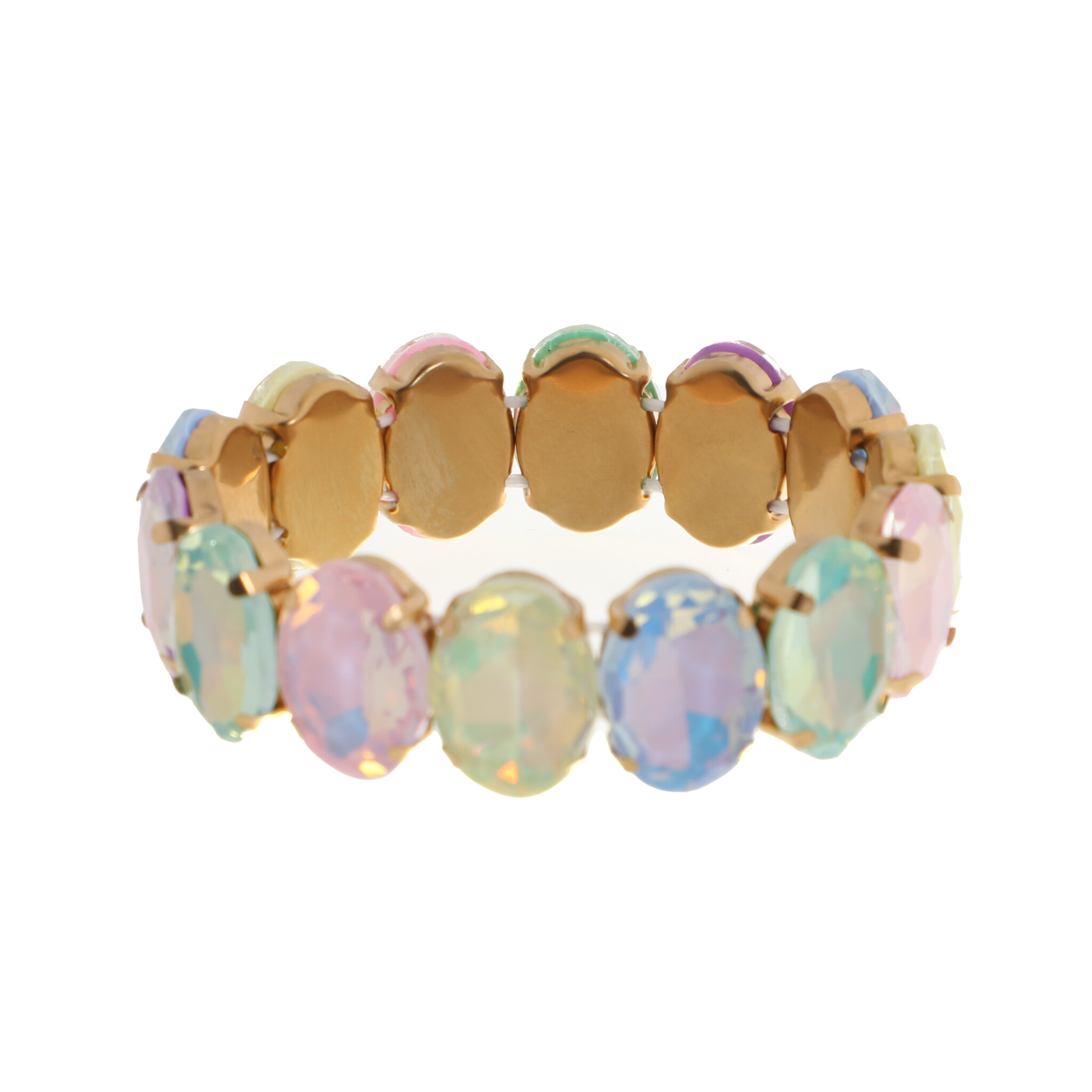 Crystal Dance armband in pastelkleuren Deze armband is elastisch en heeft een goudkleurige finish en is mooi te combineren met andere gekleurde armbanden met bedels
