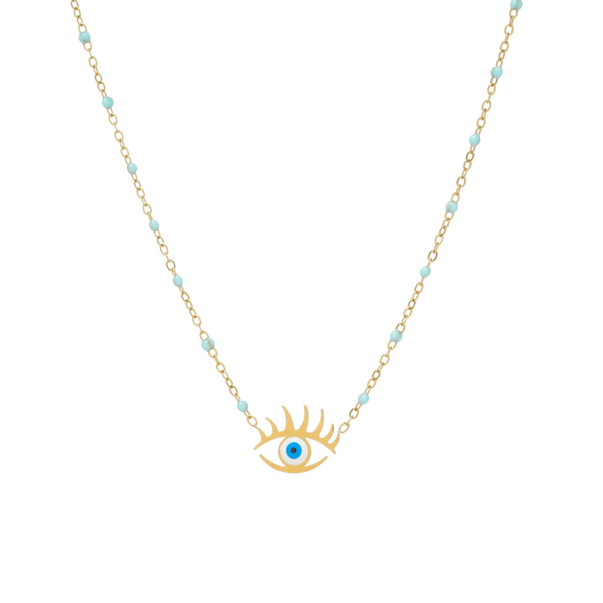 Protective Eye bracelet vervaardigd uit Stainless Steel & Real Golden plating De lengte van de Eye charm is 1,5 cm De lengte van het armbandje is 42 cm incl lobster sluiting + 5 cm verlengkettinkje