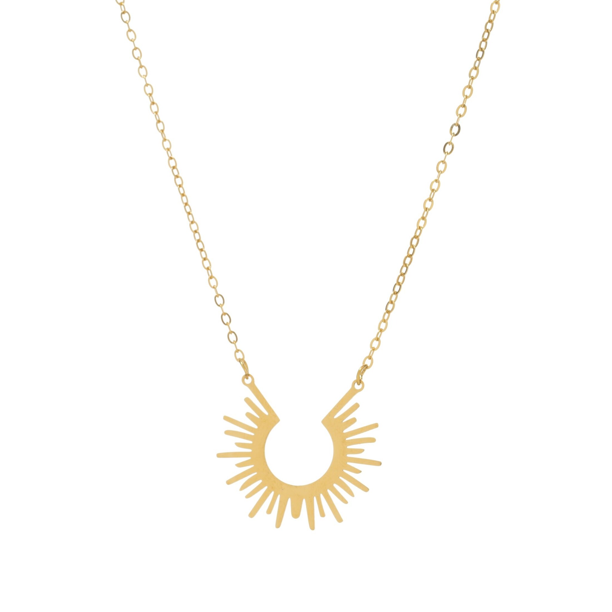 Vibrating Sun Necklace - vervaardigd uit Stainless Steel & Real Golden plating De diameter van de triangel pendant is 2.5 cm De lengte is 44 cm met een verlengstukje van 5 cm